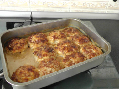 А еще можно добавить в фарш обыкновенную горчицу,немного.готовлю без яиц.После жарки тушу в соусе из соевого соуса+сметана + вода -все поровну.Укладываю котлетки в форму и заливаю этим соусом.Сверху тру сыр и в духовку.