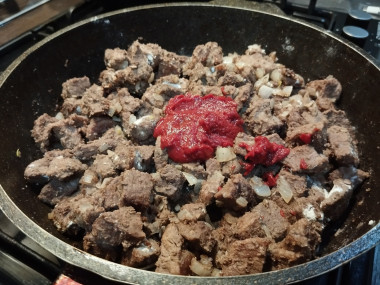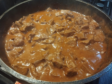 Гуляш из говядины с подливкой классический на сковороде