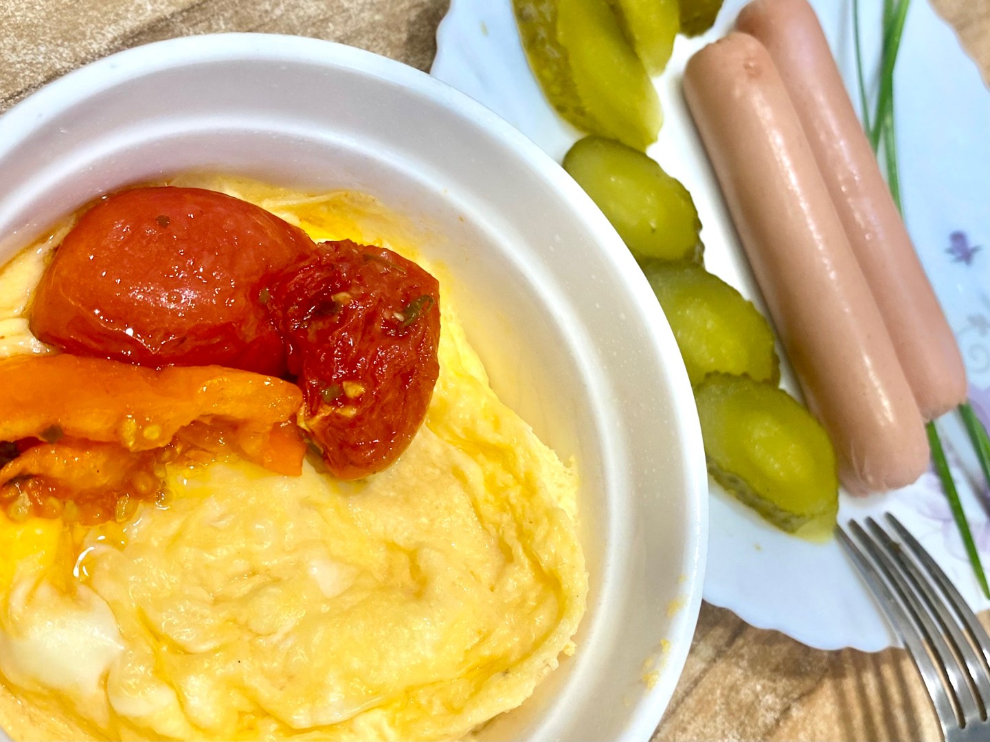 Нежный омлет в микроволновке за 3 минуты получился невероятно аппетитным и сытным за счет добавления тертого сыра. Я не знаю мощности моей микроволновой печи, но вполне хватило 3 минуты для приготовления этого вкусного завтрака.