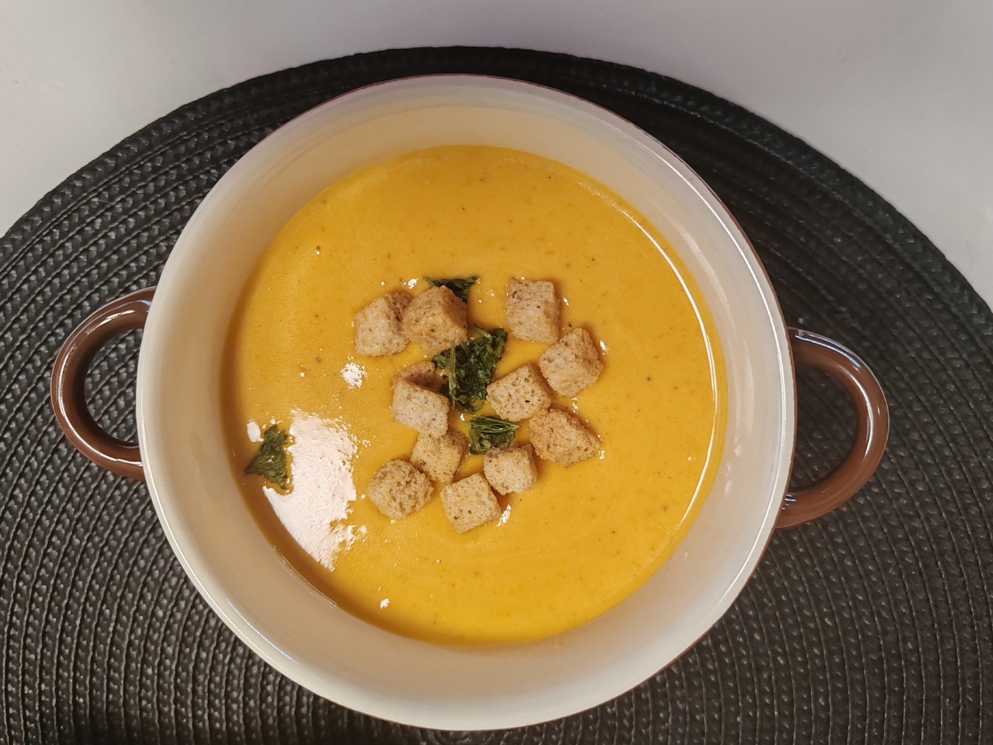 Очень вкусный суп получился по вашему рецепту! Насыщенный тыквенный вкус, лёгкая сладость от карамелизации лука и морковки. Приятная текстура после блендерения . Сухарики с травами добавляют приятную хрустинку и дополнительные специи во вкус. Мужу тоже очень понравился. Отличный вариант для разнообразия первых блюд, простой, быстрый и вкусный 👍🏻