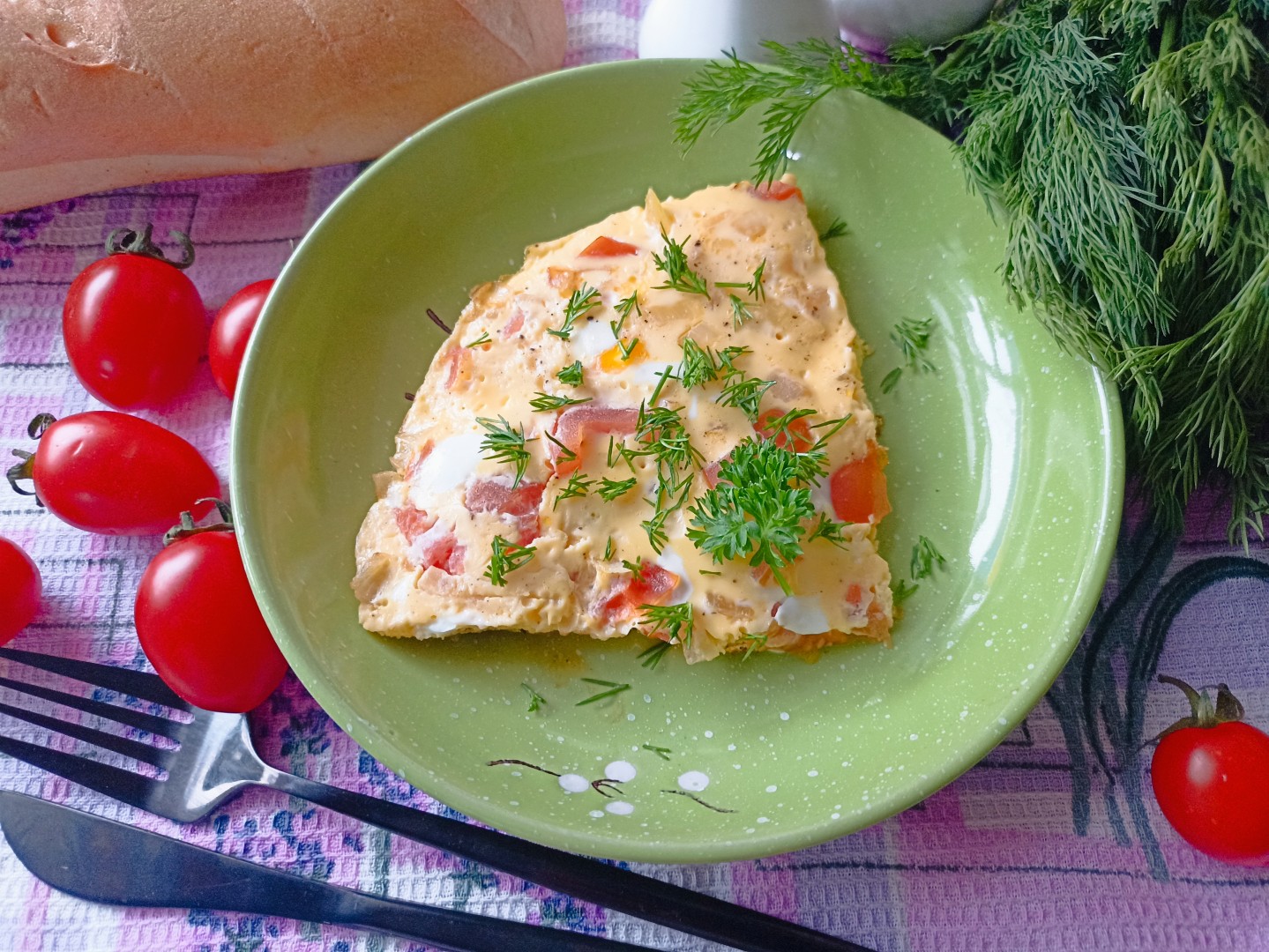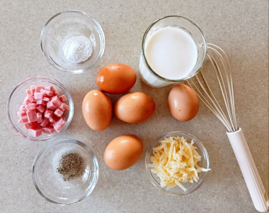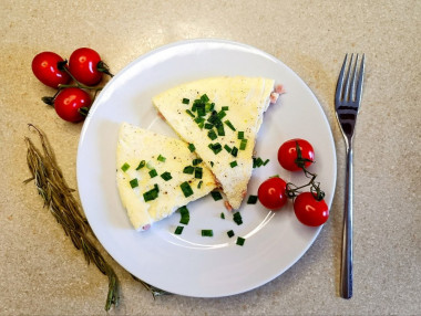 Решила попробовать усовершенствовать обычный омлет и наткнулась на этот замечательный рецепт. Омлет с ветчиной и сыром оказался простым и вкусным вариантом для завтрака. Мои домочадцы любят более плотный омлет с небольшим количеством жидкости, поэтому я добавила на 5 яиц 200 мл 1,5% молока. Блюдо получилось нежным, легким со сливочным вкусом благодаря сыру и сливочному маслу. А добавив немного зеленого лука и свежемолотого перца, блюдо приобрело приятные нотки пикантности. Помидоры добавлять не стала, так как мои дети больше любят томаты черри в свежем виде. Спасибо автору за наш вкусный завтрак!