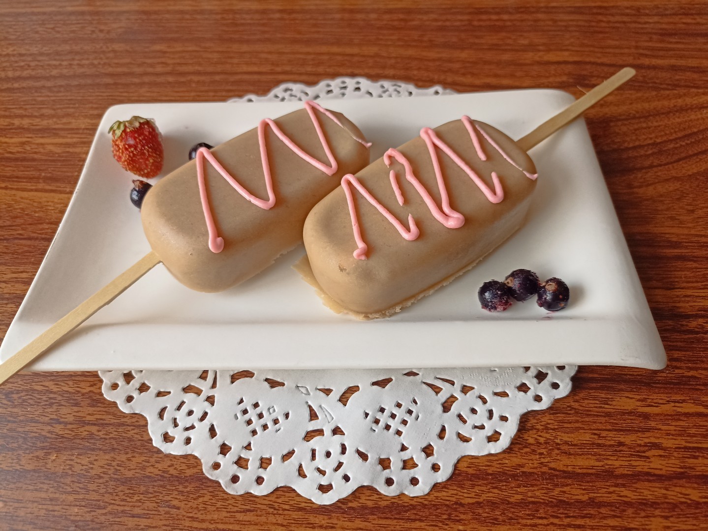 После того, как запеканка приготовилась, сверху покрыла глазурью (покупала уже готовую).