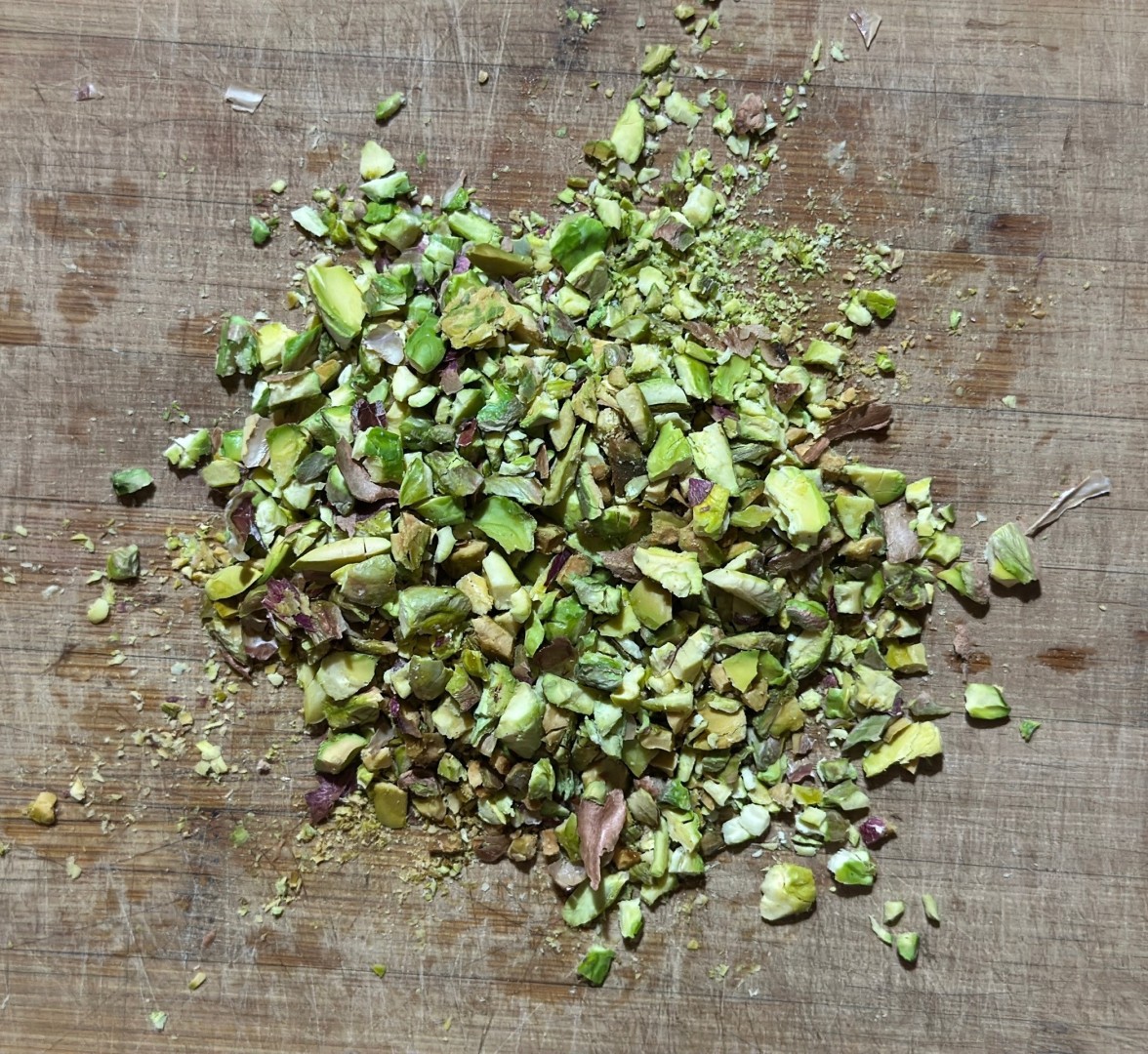 пока собрались все вместе нужные ингредиенты). Муку я заказывала на маркетплейсе ровно 100 гр на пробу, ни разу из такой муки не готовила. Она пришла замечательного качества и вкус финансье получился очень разнообразный. Сахарной пудры я добавила чуть мень всего 100 гр, потому что цукаты у меня были мелкие, но с разными вкусами достаточно сладкие.Фисташки были в скорлупе, когда я их почистила, то просто не забыла немного подсушить на сковороде, чтобы шелуха лучше отделилась. Поэтому рекомендую обязательно не упускать этот шаг, если используются именно такие фисташки, потому что потом еще ушло время убирать эту шелуху из измельченных фисташек. Сразу скажу ножом у меня не получилось их порубить - первая улетела просто