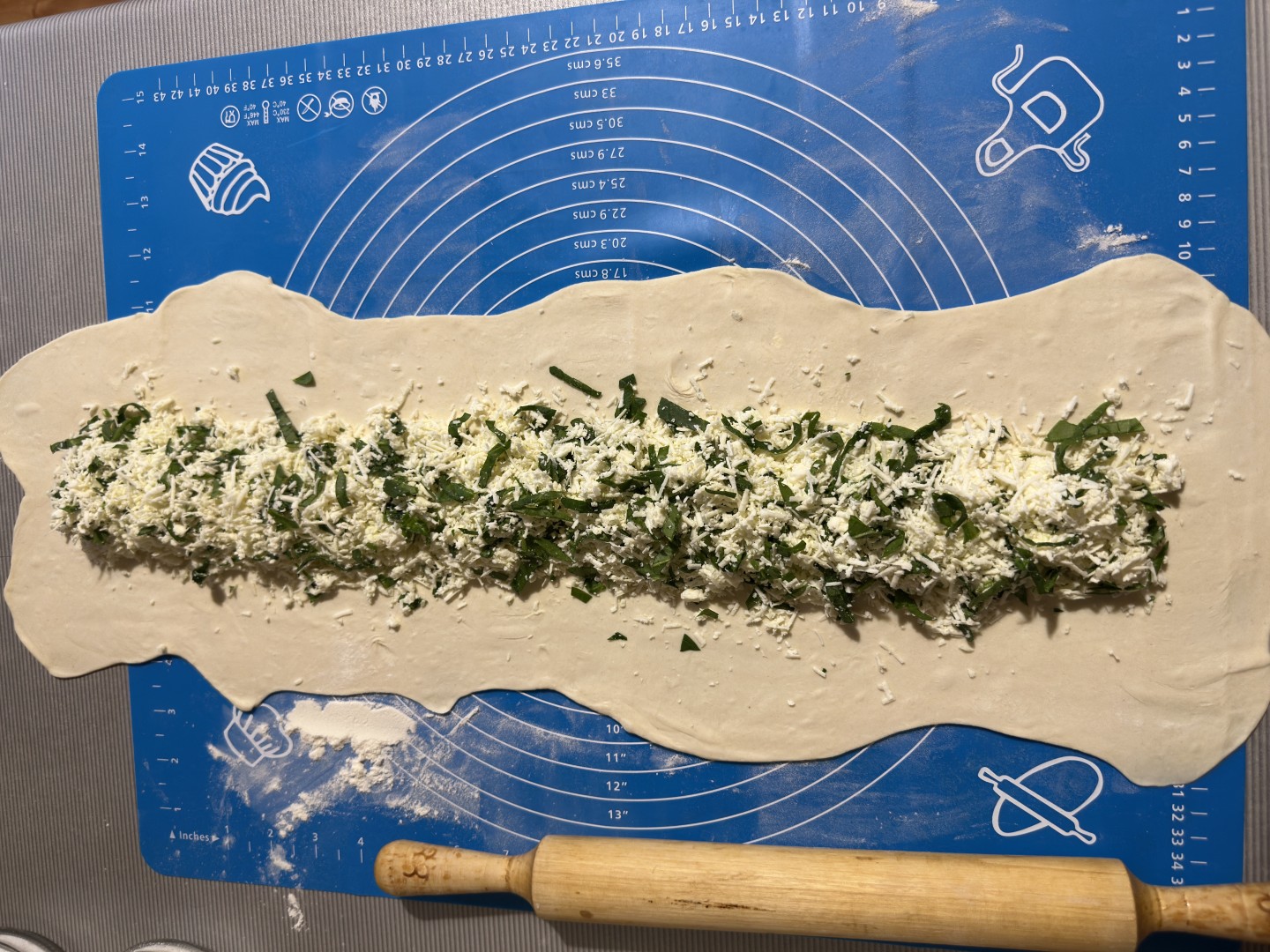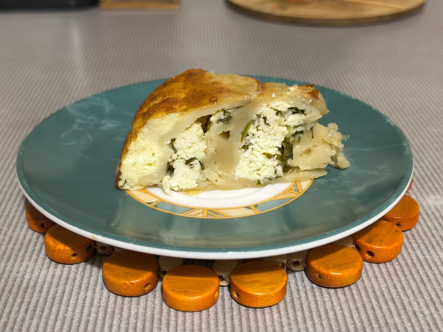 Очень вкусный пирог! Отличный баланс между солёной брынзой и нейтральным тестом. Тесто было покупное и бездрожжевое. Так как брынзы было всего 200 гр, то пласт теста взяла 1 на 250гр. Брынза оказалась достаточно твердой, поэтому я ее натерла на мелкой терке. Из зелени свежим был только шпинат) его мелко порезала. Тесто свернула длинным рулетиком и защипнула. Именно в местах защипа, теста кажется как будто много, но оно действительно разбавляет начинку и получилось плотненько. Пирог не перегружен специями, вкус остаётся чистым и натуральным. Текстура приятная. Я сверху еще положила по небольшим кусочкам сливочного масла. Время приготовления - в газовой духовке без конвектора примерно 50 минут, но мне кажется можно было бы еще его подержать, тесто приготовилось, но возможно из-за начинки как будто немного влажное. Пирог очень понравился, спасибо за рецепт!
