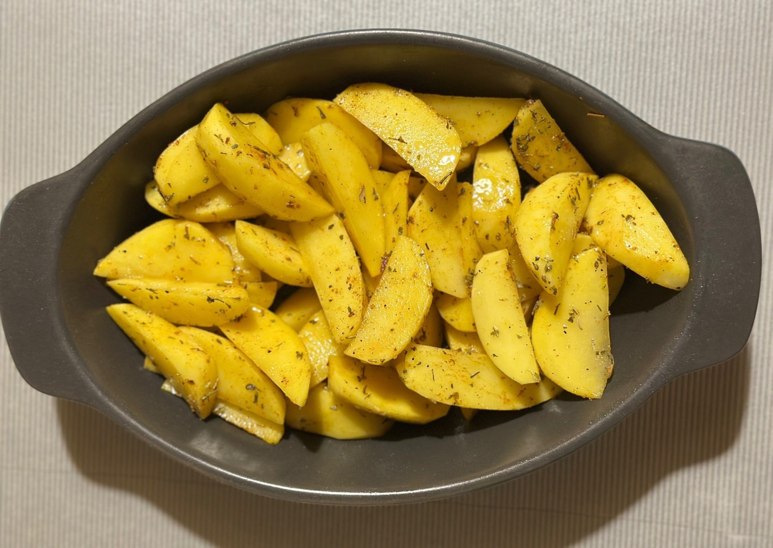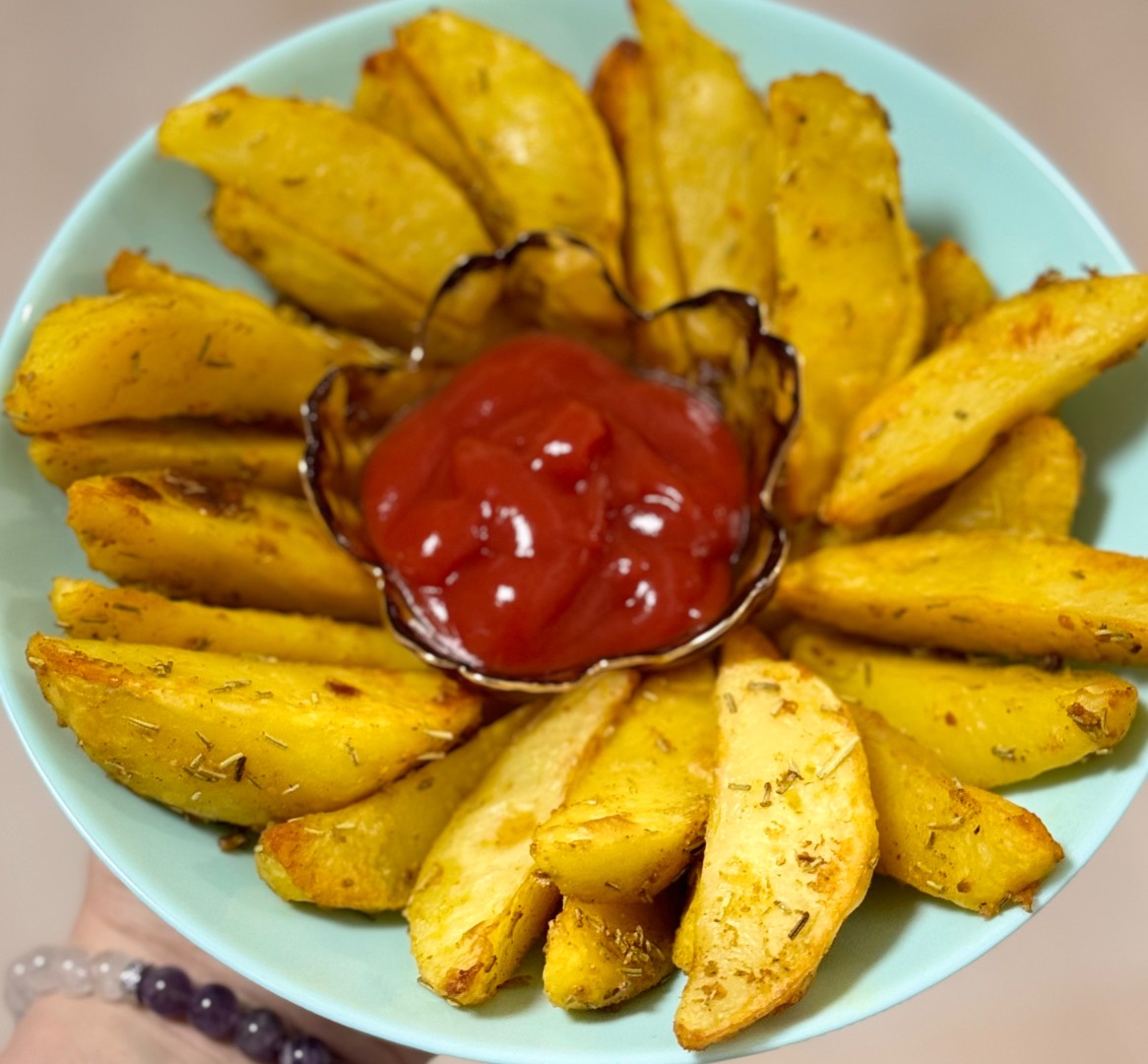 Всегда, когда решаю приготовить картофель, вспоминаю фильм "Девчата" ) Разнообразие блюд с этим продуктом действительно поражает. Картофель дольками супер вкусный гарнир для любого второго. Картофель порезала нетолстыми дольками, посолила, добавила немного паприки, куркумы, черного перца и сушеные прованские травы. Так духовка газовая без конвектора, то минут 40 форма была закрыта фольгой, а потом еще 20 минут уже запекалась без нее. Получилось очень вкусно, приготовила к ней еще соус тартар и маринованные шампиньоны. Спасибо автору!