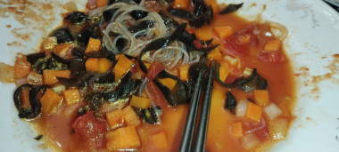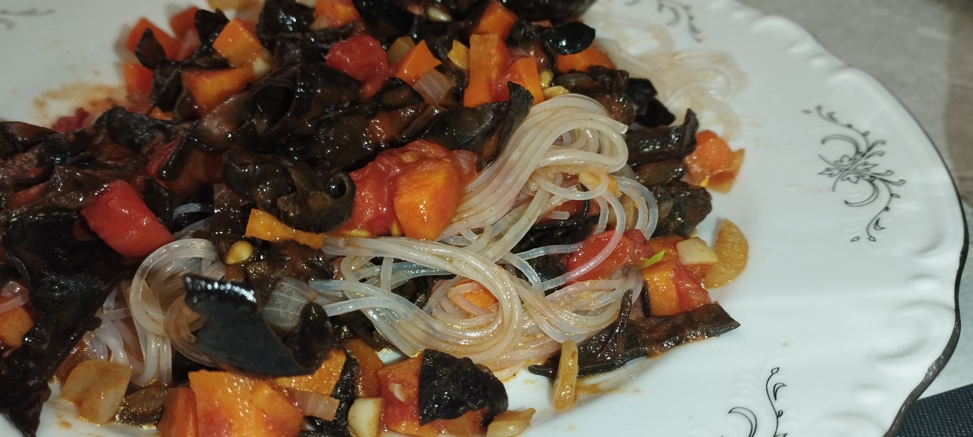 Для меня, азиатская кухня-бесконечный источник кулинарного вдохновения и нового опыта, сейчас активно знакомлюсь с принципиально новыми вкусами и ингредиентами. Давно хотела попробовать что-нибудь приготовить с фунчозой, но не знала, как создать полноценное блюдо. Какая удача была найти этот рецепт. Все подробно описано, подготовка каждого ингредиента отмечена, все понятно и доступно! Отличная идея полноценного блюда, подойдет и как холодный салат на праздничный стол (пестрое и яркое за счёт обилия овощей), и как полноценный ужин (быстро готовится, просто замочил пасту, а сам подготавливаешь овощи, удобно). Для того чтобы полностью поддержать настроение азиатской кухни, заменила шампиньоны на грибы Моэр (предварительно замочила их, и так же обжарила). Получилось очень вкусно и необычно, спасибо за оригинальный рецепт, однозначно, буду повторять.