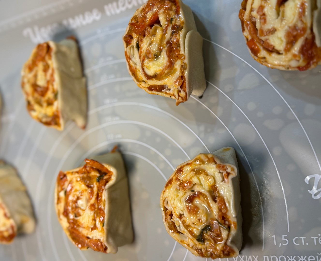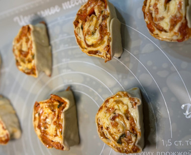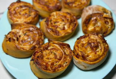 Рулетики очень понравились 🥰 Но допустила несколько ошибок - использовала не вареную колбасу, а пепперони из запасов. Она более соленая, а значит, что мне нужно было уменьшить количество соли, добавленной в соус, либо вообще его не солить. И еще нужно очень хорошо заточить нож, чтобы рулетики резались без труда. У меня они вышли не очень ровные. Ну и под конец приготовления стоило выключить режим верха, так как они у меня слишком зарумянились сверху 😃 еще чуть-чуть и был бы прямо перебор. Спасибо за рецепт, мужу понравились, очень сытные 🌸
