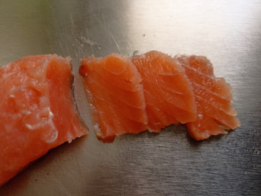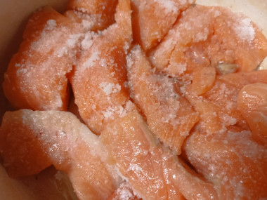 Приготовила соленый лосось в домашних условиях. Чтобы удобнее было использовать рыбу для бутербродов или салата - сразу срезала мякоть с кожи , посыпала смесью соли и сахара ( приправы добавлять тоже не стала), перемешала и оставила на ночь просаливаться. Уже к завтраку приготовила бутерброды. Очень вкусная рыбка получилась. Идеальные пропорции посолочной смеси, рыба в меру соленая, сахар не перебивает вкус, а дополняет и раскрывает его. Спасибо автору за рецепт!