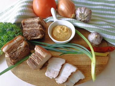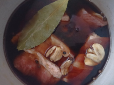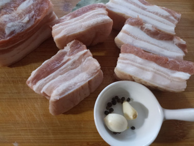 Купила свиную прослойку и решила приготовить сало в соевом соусе вареное , тем более, что активного времени затрачивается совсем немного, и буквально через несколько часов это сало уже можно подавать к столу. Для варки я нарезала его небольшими брусочками, чтобы удобнее разместить его в небольшом сотейнике и полностью залить рассолом из соевого соуса и воды. Варила я его тоже около 25 минут с момента закипания, немного пришлось ещё добавить соевого соуса и воды, чтобы и остывало сало полностью покрытым рассолом. После остывания кусочки сала вынула из раствора, промакнула салфетками, сложила в пакет и отправила в холодильник. Получилось сало очень вкусным и ароматным. Спасибо автору за рецепт!