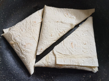 К завтраку решила приготовить пирожки конвертики с сыром яйцом и луком из лаваша. Вареные яйца в холодильнике имелись, натерла их, как и сыр на тёрке, нарезала немного зелёного лука, добавила сметану, соль, перец- начинка готова! Из лаваша нарезала полоски, выложила на нижний угол начинку, свернула треугольники. В последний момент решила не обмакивать треугольники в яйце, захотелось получить сочетание хрустящей корочки с мягкой начинкой, поэтому обжарила пирожки на сковороде, слегка сбрызнутой маслом. Отличный , быстрый и вкусный завтрак получился. Спасибо автору за рецепт!
