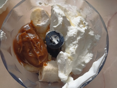 Считанные минуты на приготовление, около двух часов на ожидание и домашнее мороженое с вареной сгущенкой порадует вас натуральным вкусом и банановым ароматом! Я готовила его из двух бананов, уменьшив количество сметаны и варёнки с помощью калькулятора сайта.Чтобы мороженое не оказалось слишком сладким, варёную сгущёнку добавляла частями, пока не получила оптимальный для себя вкус. Спасибо автору за рецепт! Впереди лето, буду готовить такое мороженое много раз, экспериментируя со вкусами и добавками.