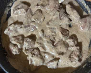 Обожаю такие блюда, которые готовятся быстро, требуют минимум ингредиентов, а итог - очень вкусно. Печень использовала говяжью. Нарезав небольшими кусочками, я ее сразу обваляла в муке и отправила на разогретую сковороду, именно потому что часто у меня получаются мучные комки) Обжарив минут 5-7, добавила разведенную водой сметану и тушила под крышкой 15 минут. Из специй использовала кориандр, базилик и имбирь. Вкусно, сытно, а главное быстро, то, что нужно любой хозяйке !