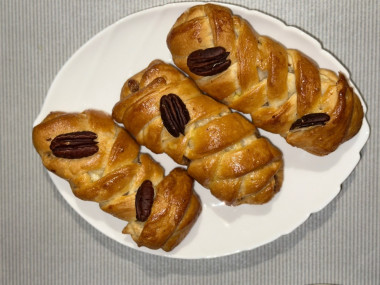 Эта слойка ну просто отличный вариант для утреннего кофе! Такая аппетитная и румяная, что хочется сразу ее съесть. Я когда готовлю что-то первый раз - всегда использую небольшое количество продуктов). Орехи натерла на терке (получилось 45 гр), сироп добавляла "на глаз"