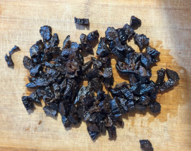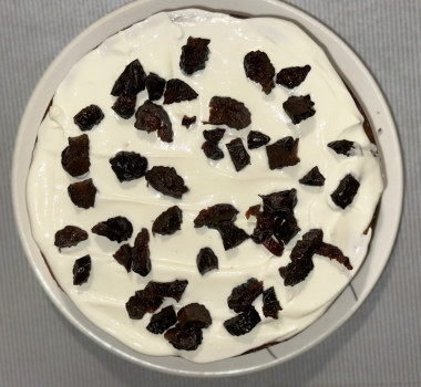 ). Крем делала с сахарной пудрой, получился идеальной сладости, с тонким ванильным оттенком. Чернослив придаёт интересную текстуру и глубину вкуса. Это не просто десерт — это маленькое гастрономическое приключение!