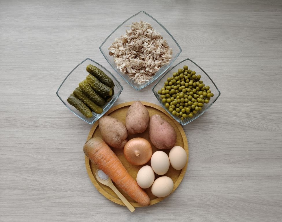 Огурцы придают салату свежесть и легкость. Для классики подойдут соленые или маринованные огурцы, добавляющие пикантную кислинку. Можно использовать и свежие, если хочется большей нежности. Огурцы нарезаем кубиками, предварительно отжав от лишней влаги.