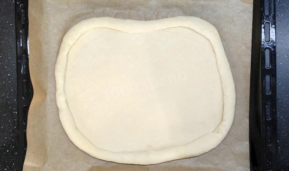 Тесто раскатайте и сделайте бортики что бы начинка не вытекала.