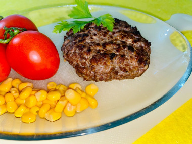 Время жарки и время в духовке строго по рецепту. Бифштекс рубленный из свинины хорошо прожарился и дошёл до готовности в духовке. С духовки веял пикантный аромат бифштекса.