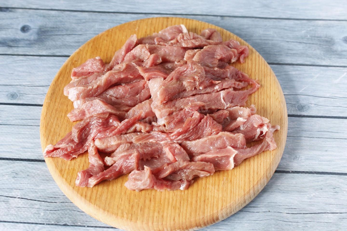 В нарезке мяса главное инструмент, кончено же острый нож, тогда нарезать мясо даже тонкой соломкой не составит труда, а ещё лучше резать мясо наполовину размороженным, так оно держит форму и легче режется.