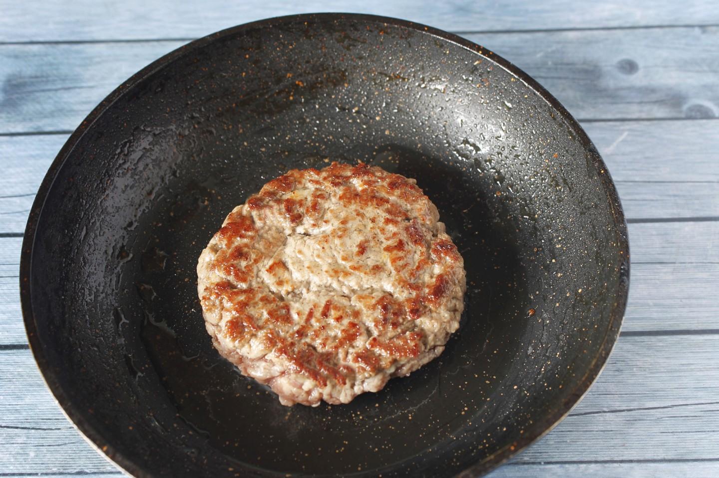 Разогрейте на сковороде растительное масло. О том, как подобрать идеальную сковороду, а также как правильно выбрать растительное масло, читайте в отдельных статьях, ссылки в конце рецепта. Выложите на сковороду заготовки. У меня сковорода небольшая, поэтому жарила по одному. Обжаривайте бифштексы с одной стороны на среднем огне в течение 3-х минут до образования румяной корочки.