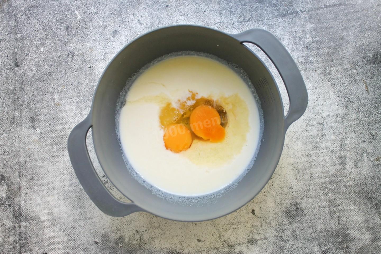Яйца вымойте в тепловой воде и насухо вытрите. Ведь даже при видимой чистоте на них могут быть частички грязи и бактерии. Разбейте яйца и добавьте в массу. Перемешайте все венчиком до однородности.