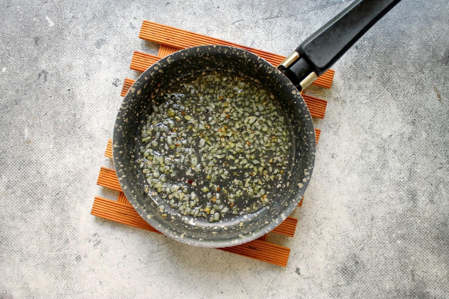 Репчатый лук почистите, сполосните и мелко порежьте. В сковороду налейте две столовые ложки растительного масла и разогрейте на среднем огне. Положите лук и обжаривайте, перемешивая в течение 3-5 минут. Лук должен стать мягким, но остаться светлым. Снимите сковороду с огня и остудите. Какое масло лучше взять для обжаривания или выпечки блинов, и какие сковороды лучше всего подойдут можно узнать ниже под шагами.