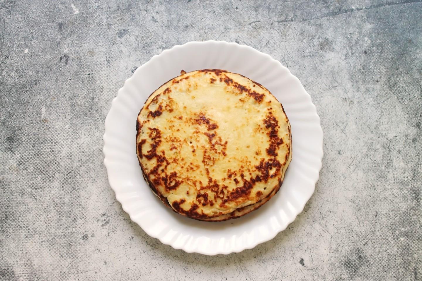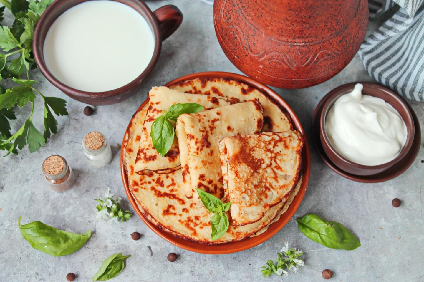 Готовые блины снимите со сковороды на тарелку. Продолжайте выпекать блины, пока тесто не закончится.