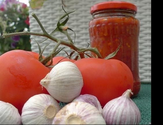 Подавайте аджику из помидор перца и чеснока как острую приправу к мясу, рыбе, картофелю, макаронам или бобовым. Отлично сочетается с холодцом, салом и черным хлебом. Можно использовать как основу для соусов.