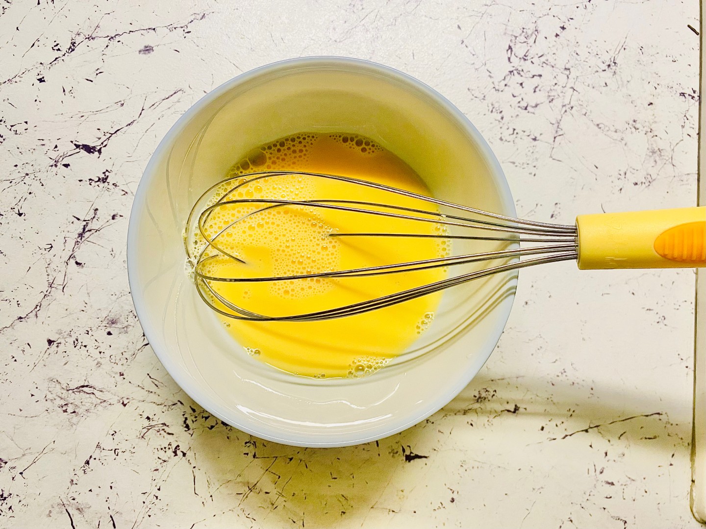 1. Разбейте яйца в миску, добавьте молоко и взбейте хорошо вилкой или венчиком.