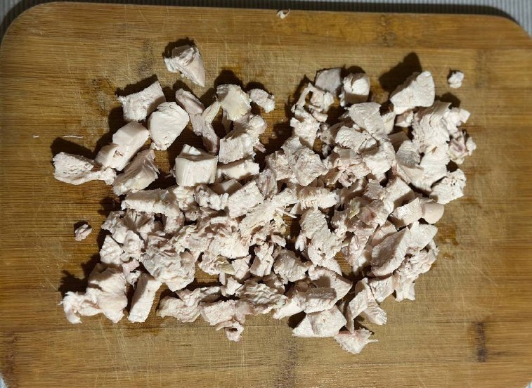 Когда мясо остынет, нарежьте его небольшими кубиками.