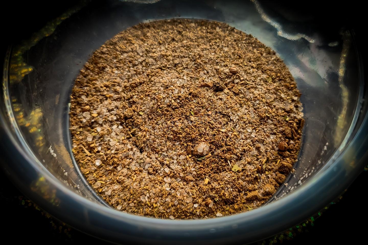 Пока мясо кипятится, сухие специи измельчить в кофемолке, смешать с солью в отдельной чашке.