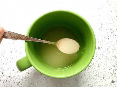 Всыпьте в миску сахар, влейте туда такое же количество воды. Ложкой перемешайте воду до растворения сахара. Можете даже оставить ее минут на 5, тогда он растворится еще лучше.