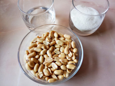 Как сделать арахис в сахаре? Подготовьте продукты. Арахис подойдет любой — свежий, обжаренный, очищенный или нет. Если орехи сырые, то лучше их промыть, а затем обсушить бумажным полотенцем. Я взяла обжаренный с солью, мне нравится сочетание соленого и сладкого. Сахара и воды понадобится одинаковое количество.