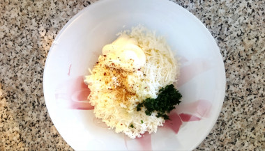 Чтобы было удобнее тереть сыр, я предварительно отправила его в морозилку. И что самое интересное, по консистенции он стал напоминать творожный. В результате получилось нежное и вкусное блюдо.
