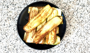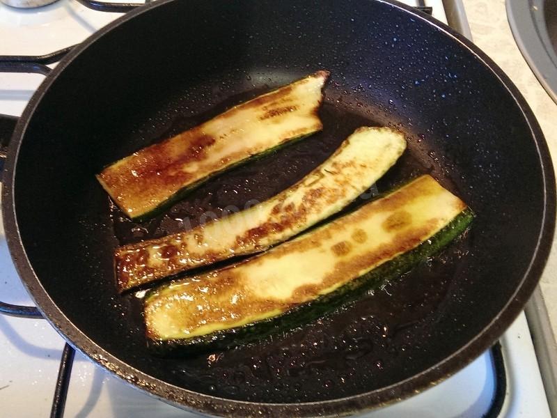 Обжарьте кабачки на подсолнечном масле с двух сторон.О том, как выбрать сковороду и идеальное для жарки масло читайте в отдельных статьях, ссылки под шагами.