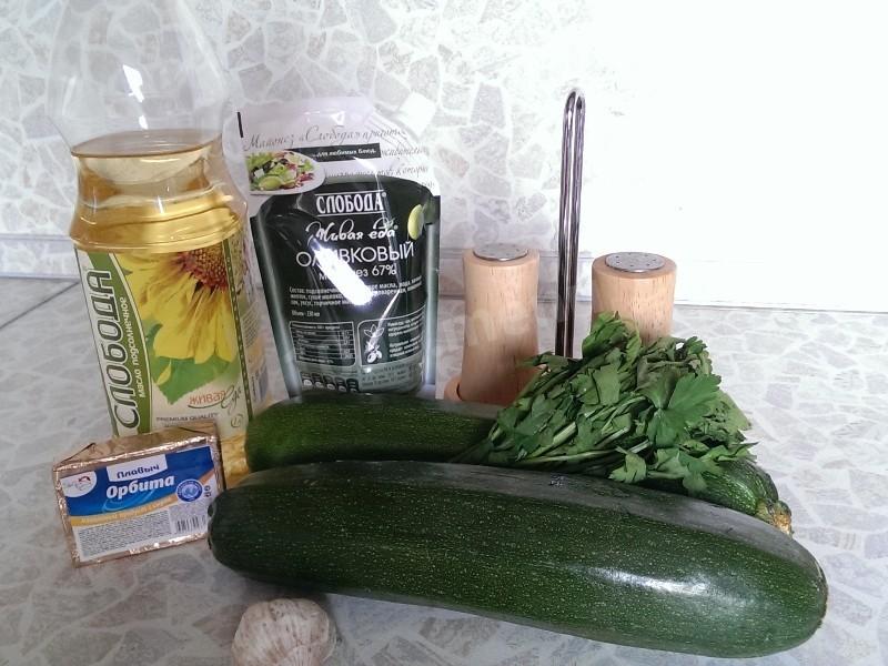 Как приготовить рулетики кабачки с сыром и чесноком? Подготовьте необходимые продукты для приготовления.