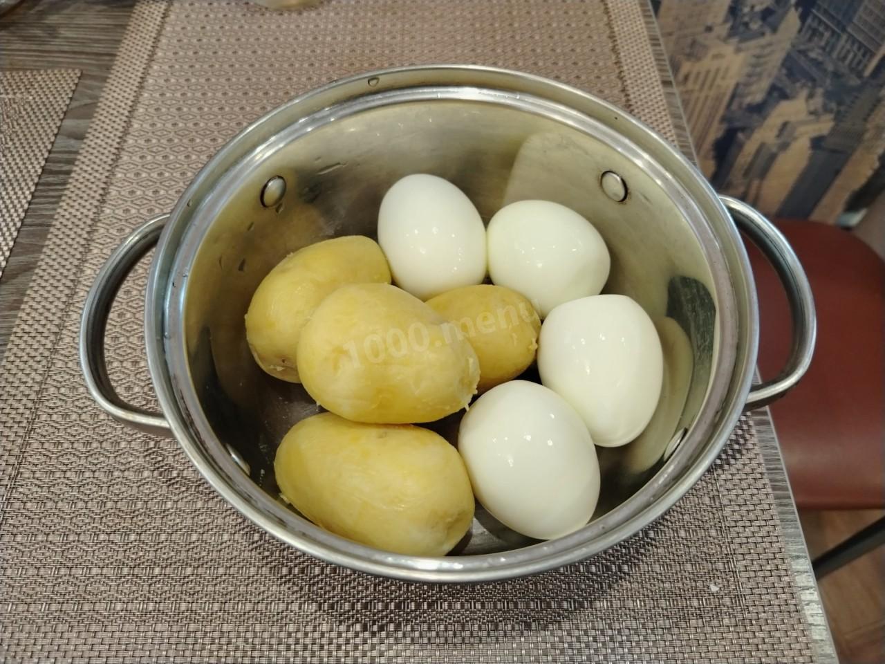 Очищаем, варённый в мундире, картофель.