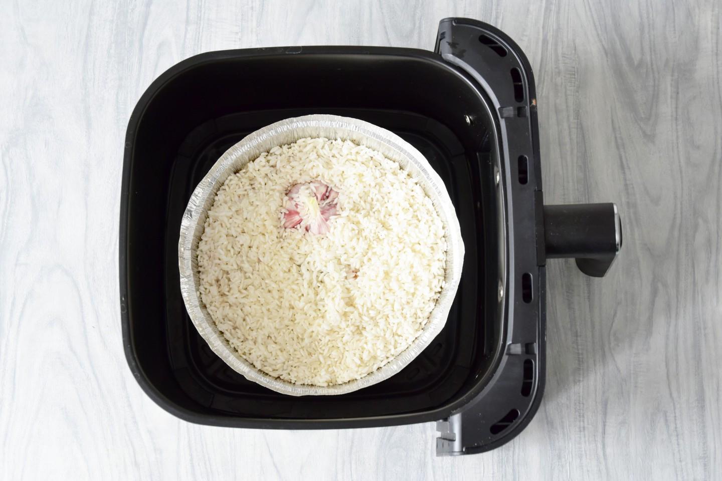 Влейте горячую воду, чтобы она поднималась над уровнем риса на 2-2,5 см. Продолжайте готовить плов около 45 минут при 180℃ до готовности риса. Каждые 15 минут плов нужно аккуратно перемешивать. Более подробная информация об особенностях запекания в аэрогриле, а также секреты приготовления вкусного плова, есть в конце рецепта под шагами.