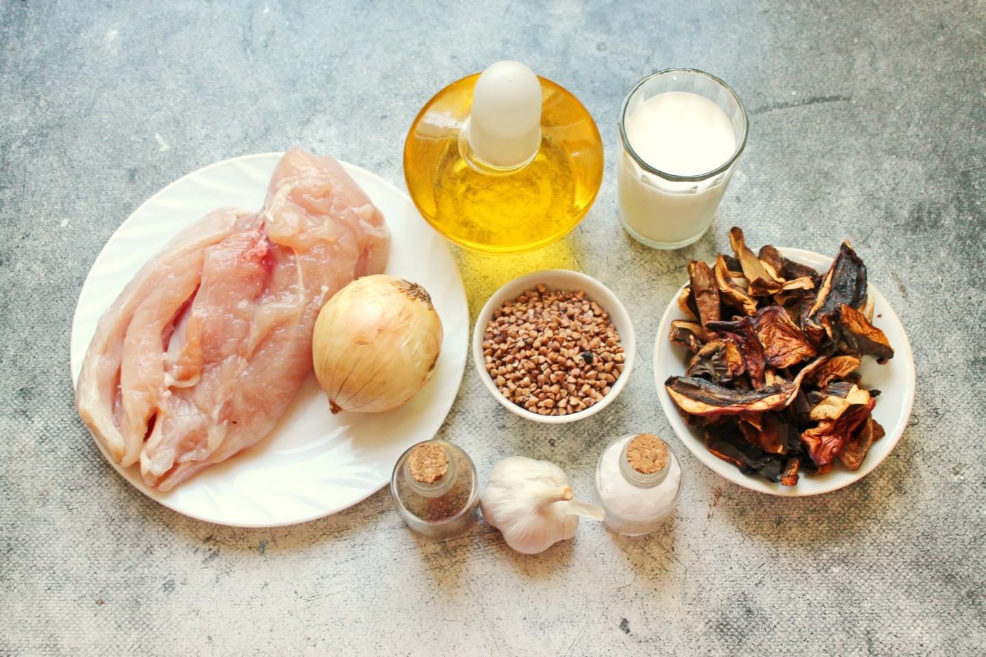 Как сделать гречотто с белыми грибами и курицей? Подготовьте все необходимые ингредиенты для приготовления. Куриное филе сполосните и обсушите, гречку переберите.