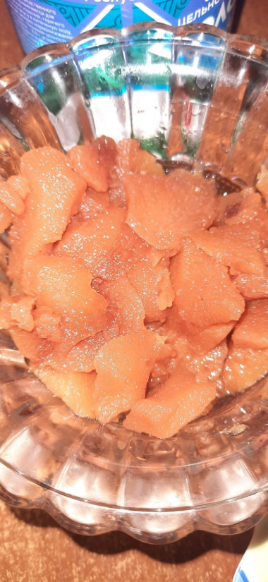 Спелые плоды айвы тщательно промываем, губку снимаем ворсинки с поверхности. Очистив айву от кожуры, нарезаем ее на кусочки требуемого размера.