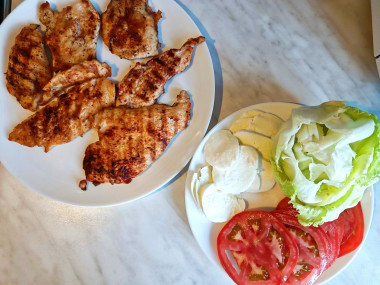 Куриное филе запекала в духовке, а потом для красоты слегка обжарила на сковороде-гриль (хотя кто там разглядит, но всё же 😄). Салат взяла айсберг – обожаю, как он хрустит! Рецепт простой и понятный, но при этом его легко разнообразить: можно добавить разные соусы, овощи или даже другое мясо.