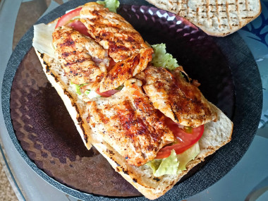 Безумно вкусный и очень сытный получился бутерброд на чиабатте – панини с курицей! Приготовила на обед просто и быстро, а в итоге – яркий, красивый бутерброд с хрустящей корочкой, нежной моцареллой и сочной курочкой внутри.
