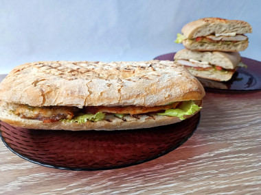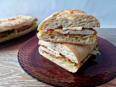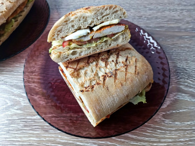 Накройте второй половиной чиабатты. Панини с курицей сразу подайте к столу. Приятного аппетита!