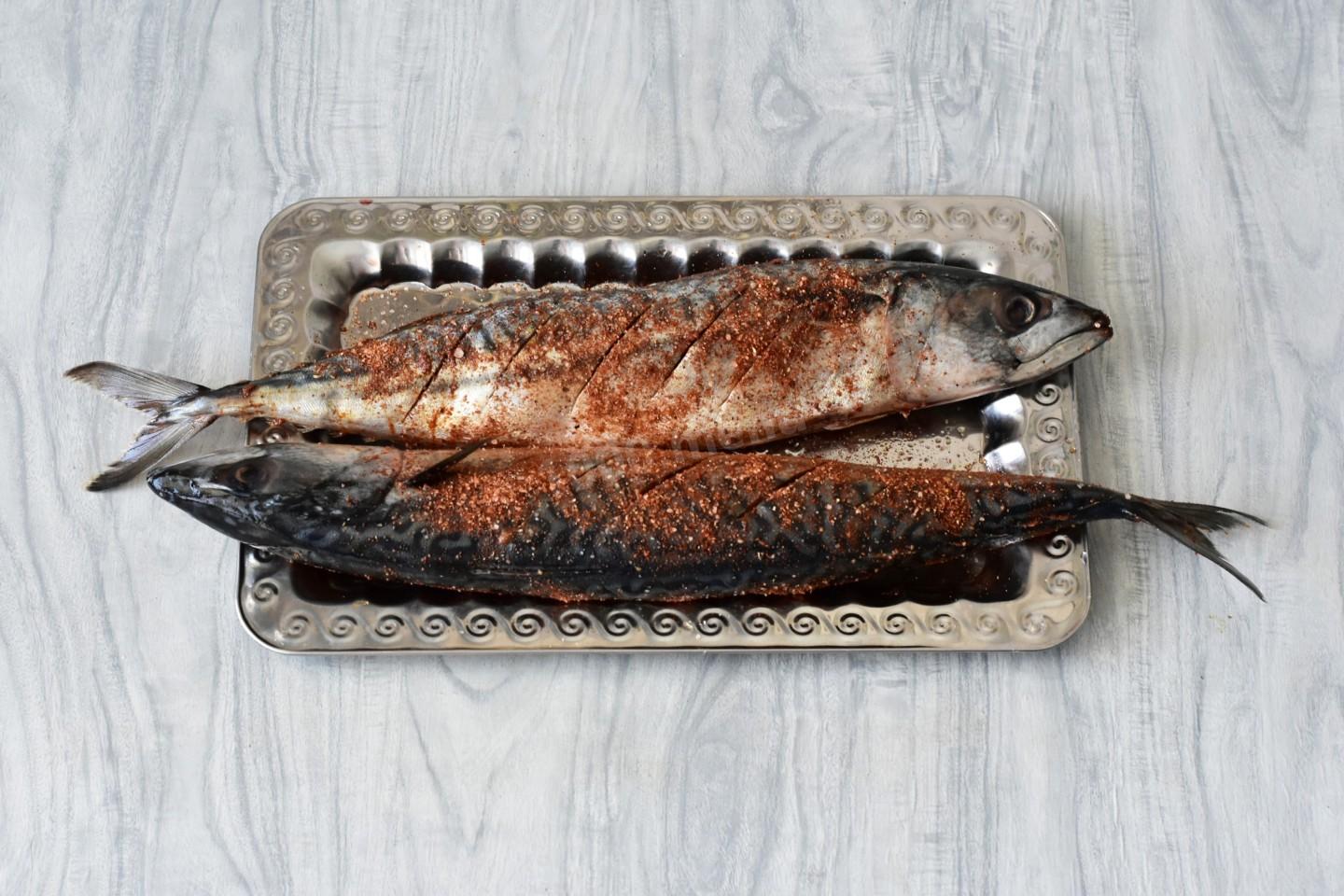 Из двух рыб получится 4 порции. Готовую скумбрию можно хранить в холодильнике до 2 дней. Лучше в стеклянной посуде под крышкой. При разогреве используйте аэрогриль или духовку — так сохранится корочка.