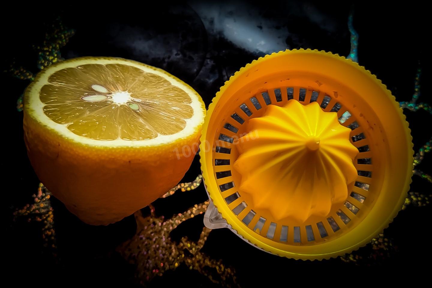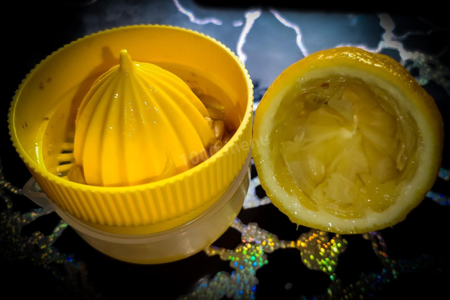 При помощи соковыжималки (у меня специальная маленькая для лимонов) выдавить сок одной половинки лимона.