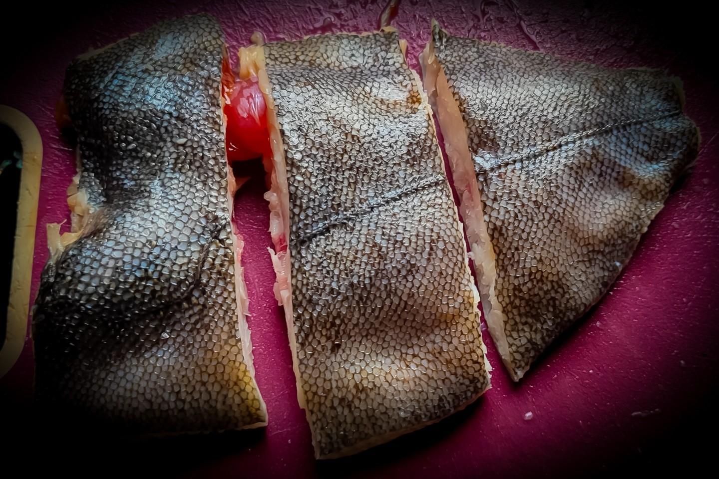 Рыбку разрезать на 3 части, удалить внутренности. и ещё раз хорошо промыть.