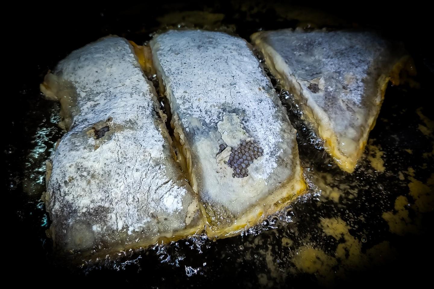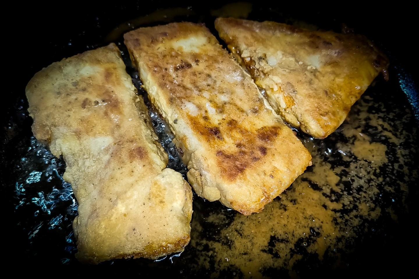 Через 5 минут рыбку перевернуть и продолжать обжаривать 5 минут. Для лучшей прожарки ещё дважды перевернуть рыбку, но уже прожаривать по 3 минуты.