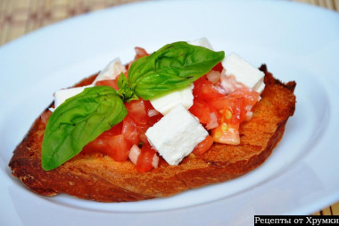 А еще можно хлеб смазать пастой из маслин и брускета приобретет еще более пикантный вкус