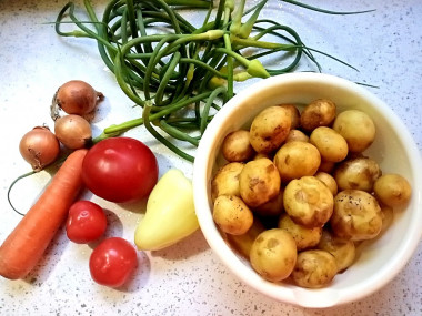 Всегда с нетерпением жду начала лета, чтобы запечь молодую картошку в кожуре. Никогда больше она не бывает такой вкусной! А чтобы блюдо получилось еще интереснее, запекла картошку с овощами в духовке.