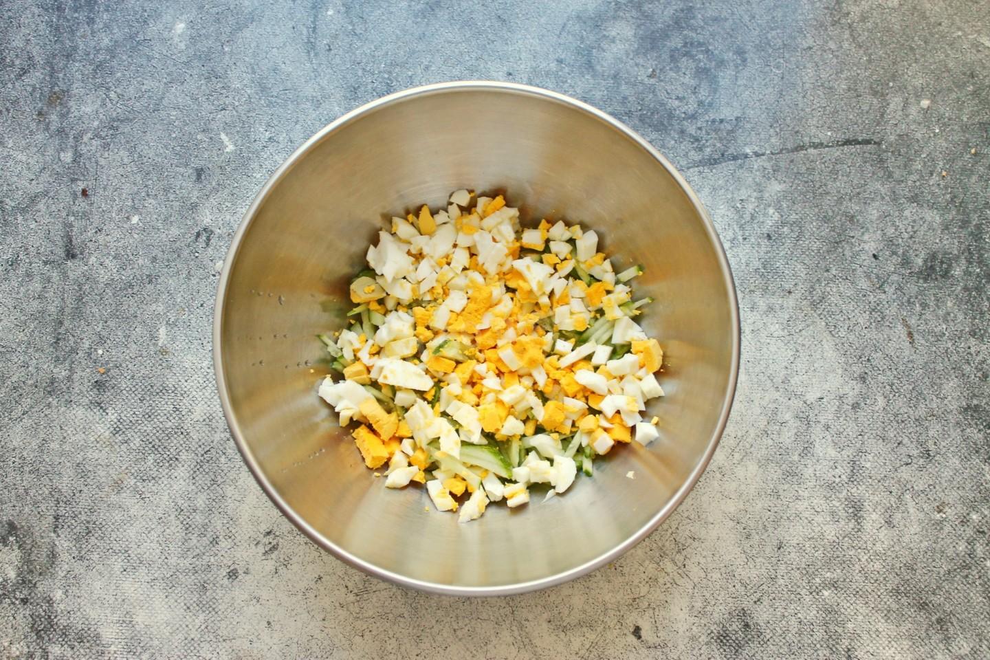 Вареное яйцо очистите от скорлупы и порежьте кубиком или соломкой, добавьте к огурцам. А чтобы больше узнать о выборе яиц и тонкостях их приготовления прочтите статью ниже.