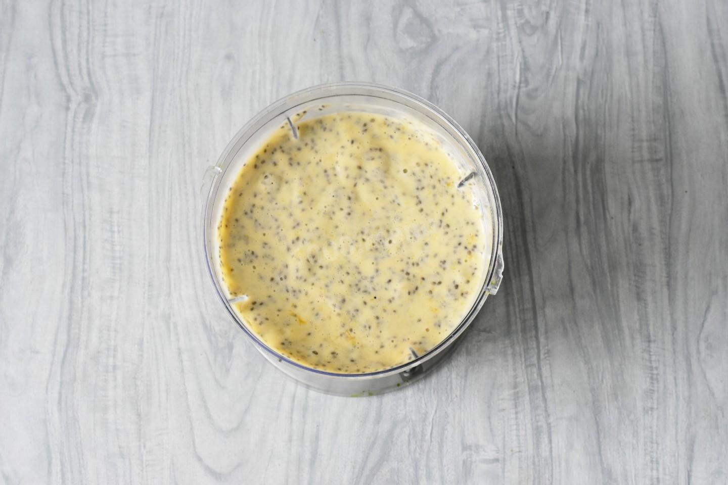 Добавьте семена чиа и тщательно перемешайте. Перед добавлением семян почитайте инструкцию. Их, возможно, придется промыть перед добавлением в блюда. У меня в инструкции было указано, что семена нужно промыть. А в инструкции от другого производителя было указано, что они готовы к употреблению. Но лучше добавлять семена чиа сухими.